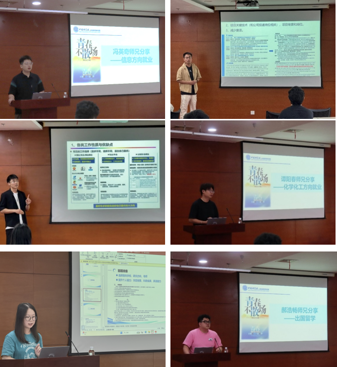 在分享环节,多位优秀毕业生依次分享求学求职的宝贵经验。毕业生冯英奇针对信息领域大类就业讲述了他自身的心得体会,强调了做选择时不要盲目从众,而是要结合个人情况和职业开展规划做出选择;毕业生武坤从招聘职位分类、简历制作、面试注意点以及心态调整等方面进行分享,指出可以顺利获得多元渠道进行信息筛选及简历投递,包括企业招聘公众号、官方网站及高校就业中心通知等,高效助力成功就业;毕业生赵浩从常见的工作选择方面进行分享,明确了工作信息收集和简历制作方面的重要性,分享了面试过程中的技巧和心得;毕业生谭阳春提醒同学们依照各类企业需求规划选择求职方向;毕业生蔡瑶雨顺利获得分享了申请国内学校攻博心得,提醒大家报考院校时需要重点关注学校官网的通知与报考要求,快速筛选出符合报考资格的院校;毕业生郝浩畅结合他在申请国外读博的经历,就如何选择就读学校,怎样与国外院校联系,与导师沟通合作等事宜畅谈他的心得体会,分享出国深造经验。