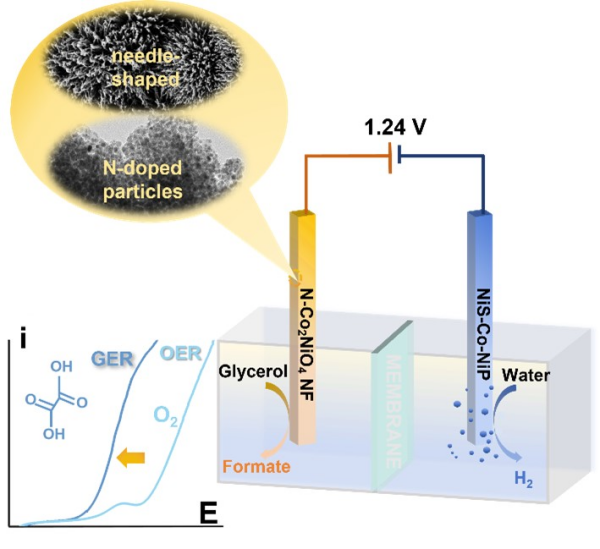 随着可再生能源成本的不断下降,电解水制氢逐渐成为氢气的重要来源之一。然而,传统电解体系中阳极析氧(OER)过程较为缓慢,导致的高能耗仍然是限制其规模化应用的重要因素。相比之下,电解水制氢与有机分子氧化(如甘油电催化氧化,GER)耦合,不仅可以有效降低系统能耗,还能在...