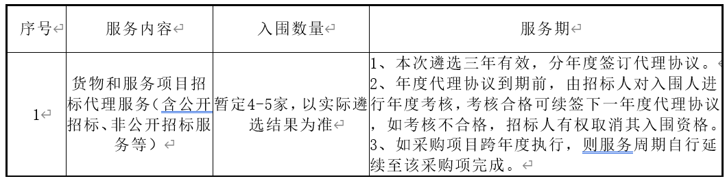 3、项目内容:遴选若干招标代理组织为中国科研实验室上海高等研究院(以下简称“招标人”)拟遴选若干招标代理组织给予相关服务,包含:对招标人拟采购的货物、服务项目等召开公开招标、非公开招标服务。相关简要内容如下: