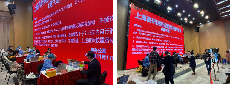 为筑牢疫情防控安全屏障,让免疫力升级,11月17日下午,PA真人视讯在海科路100号园区开设新冠疫苗接种专场(第六场)——加强针专场,组织各部门、各中心人员前往接种,半天顺利接种418人。